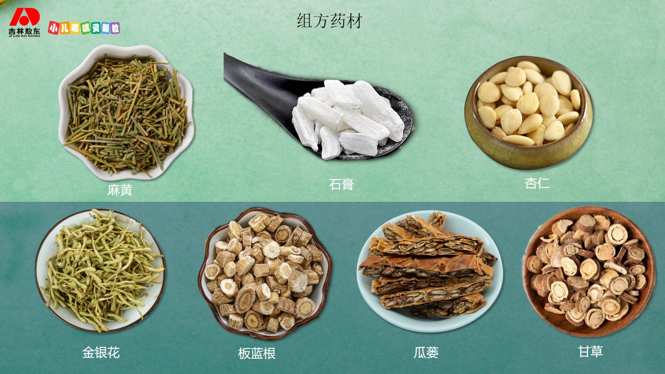 【成 份】麻黄、石膏、苦杏仁、瓜蒌、金银花、板蓝根、甘草。